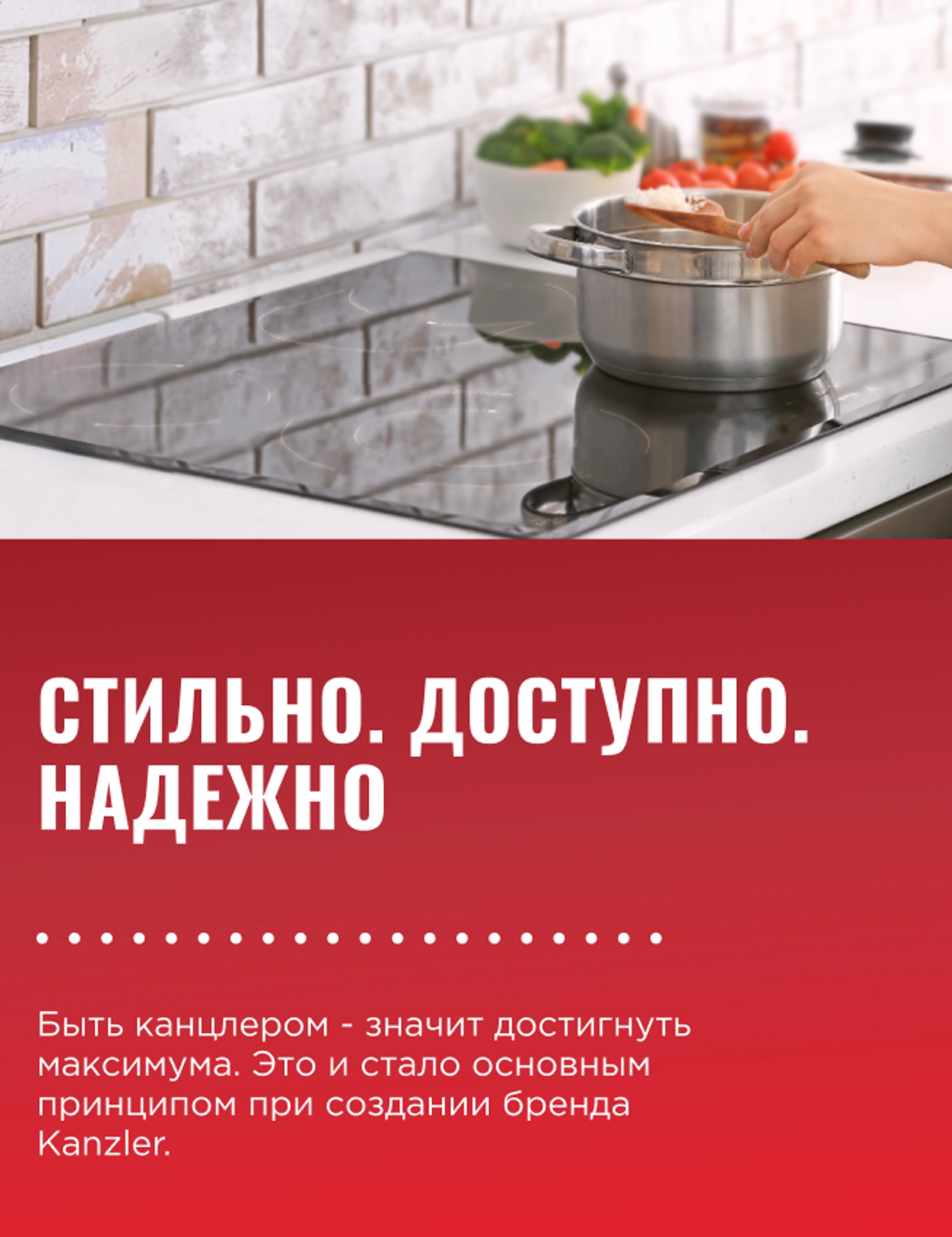 В первую очередь, бытовая техника KANZLER - это лаконичность и элегантность снаружи, и надёжная простота внутри. Это основа концепции немецких и итальянских брендов, благодаря которым современная бытовая техника получила свой облик. Именно этим мы вдохновляемся, создавая свои коллекции.