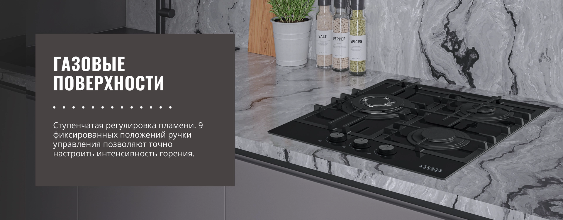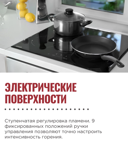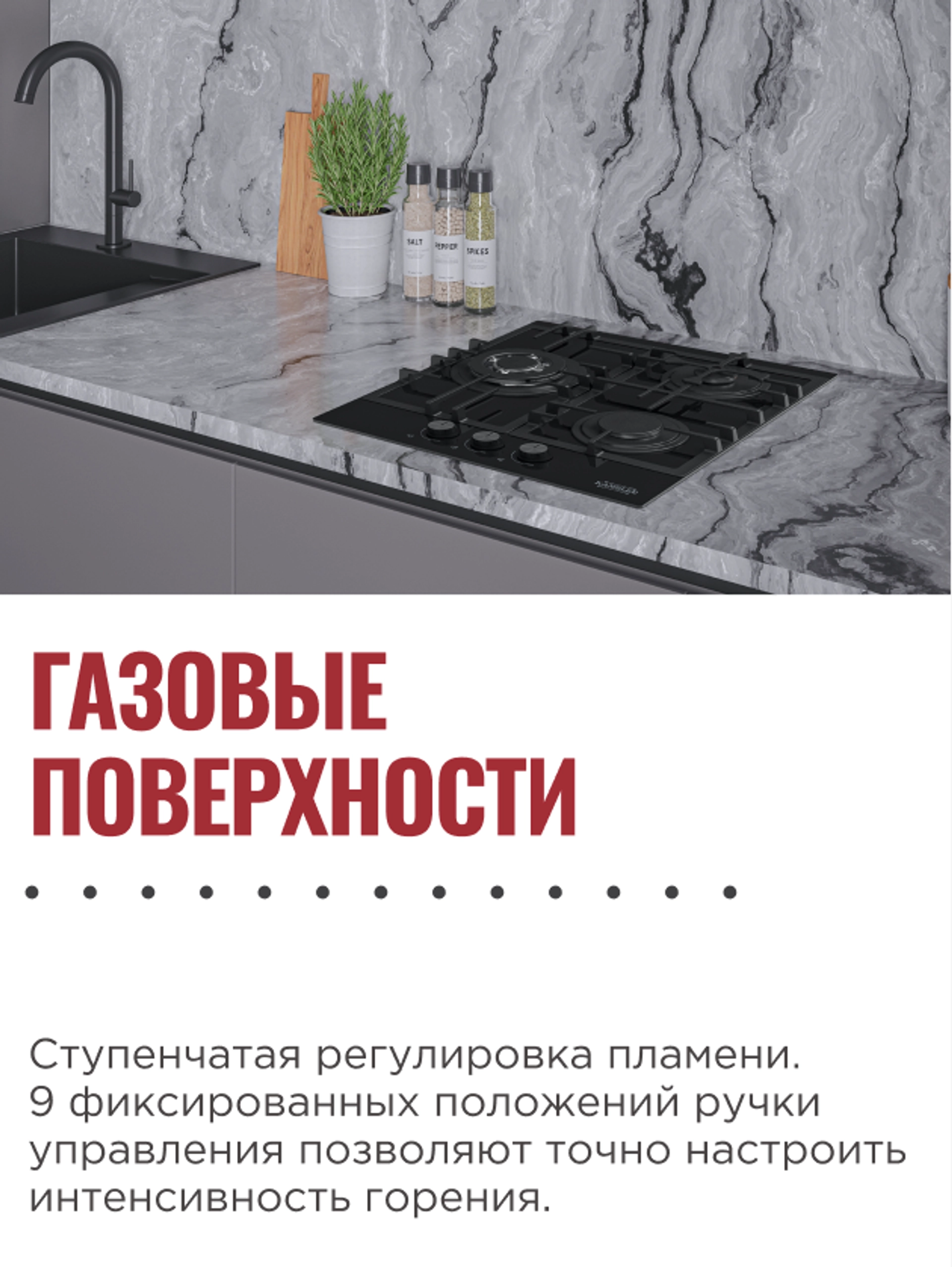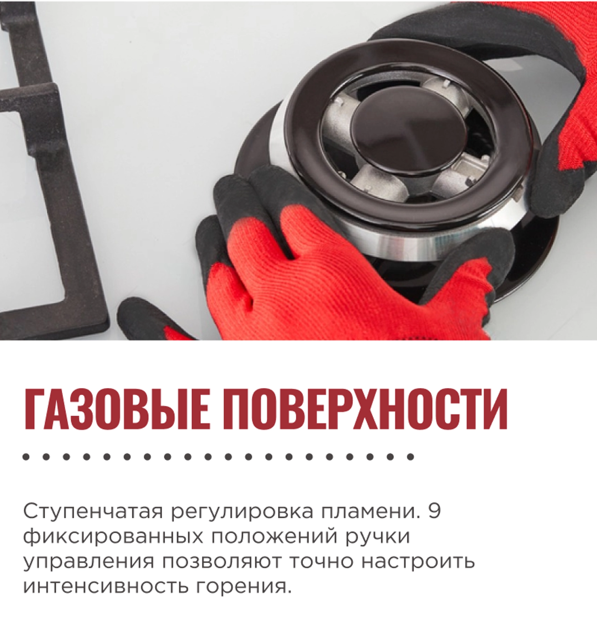 9 фиксированных положений ручки управления позволяют точно настроить интенсивность горения для каждого блюда
