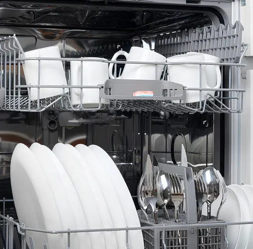 Особая конструкция расположения корзин в моющей камере позволяет мыть посуду рекордных размеров