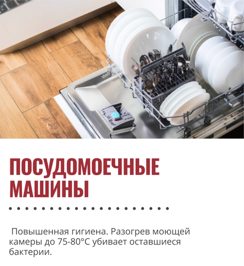 Разогрев моющей камеры до 75-80°С убивает подавляющее большинство бактерий