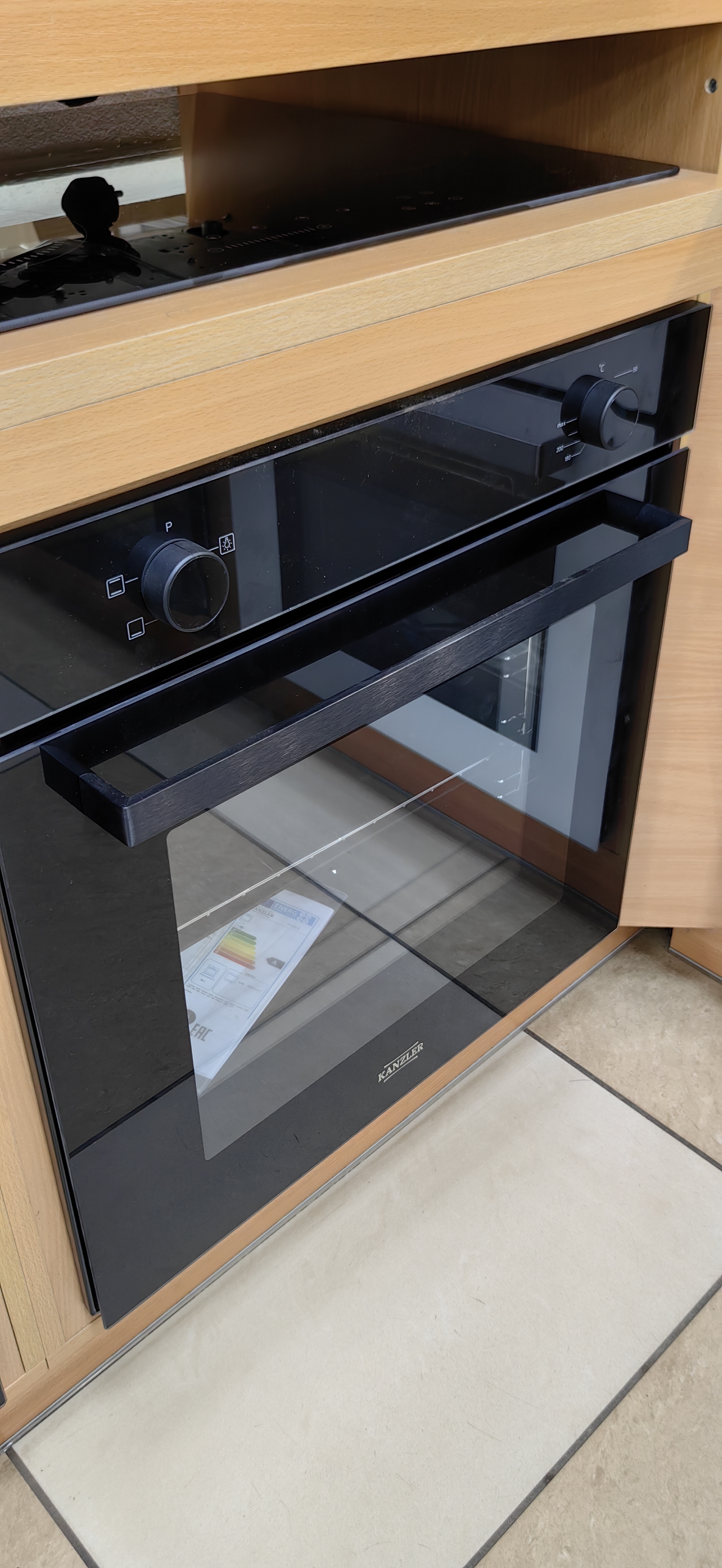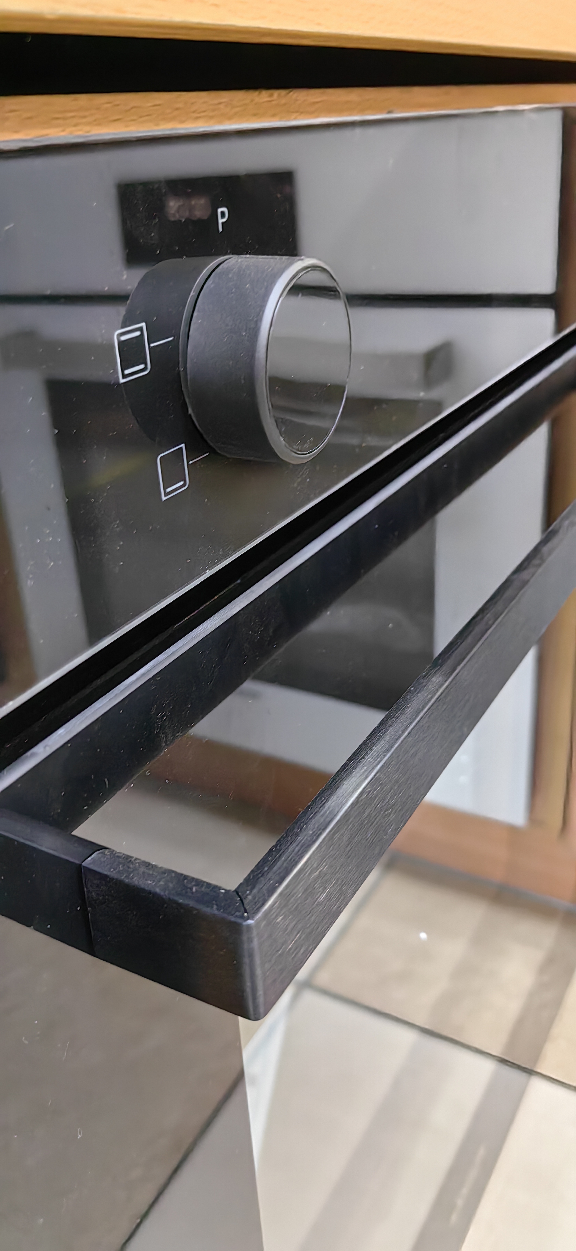 Ручки управления: чёрные металлические со стеклянным фасадом