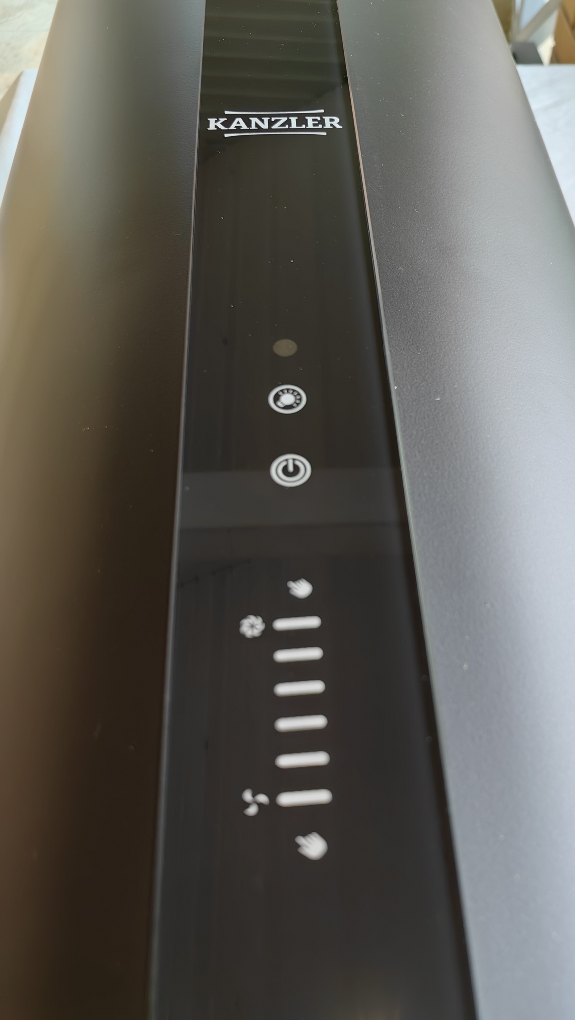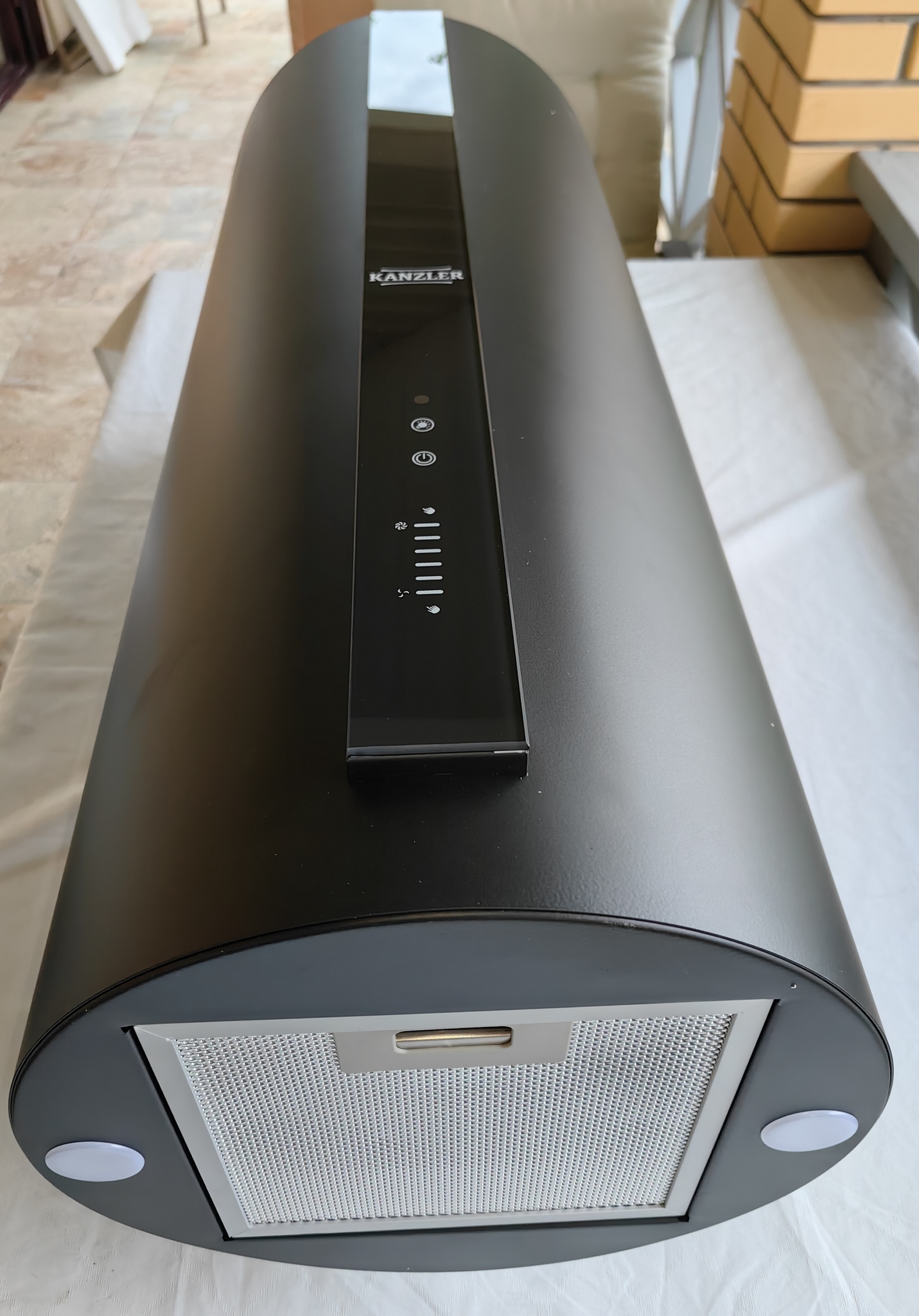 Цилиндрическая вытяжка D 559 S управляется сенсорными слайдерными переключателями, а также для удобства предусмотрена возможность дистанционного управления пультом.