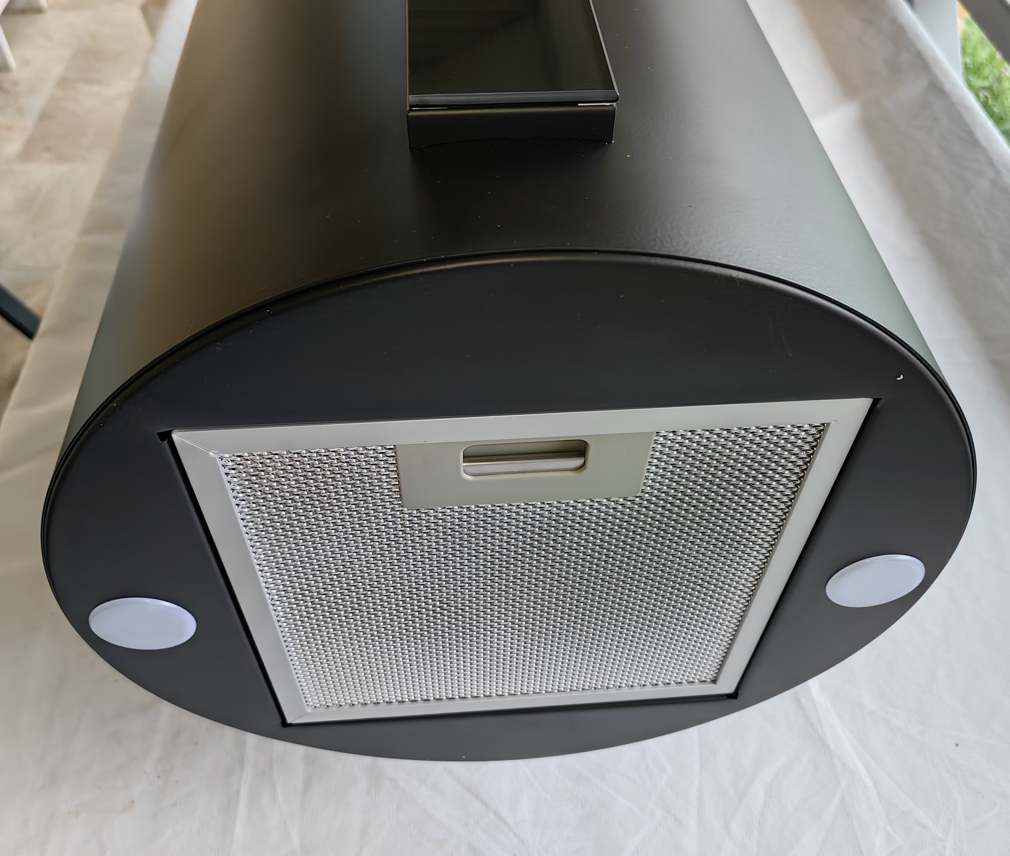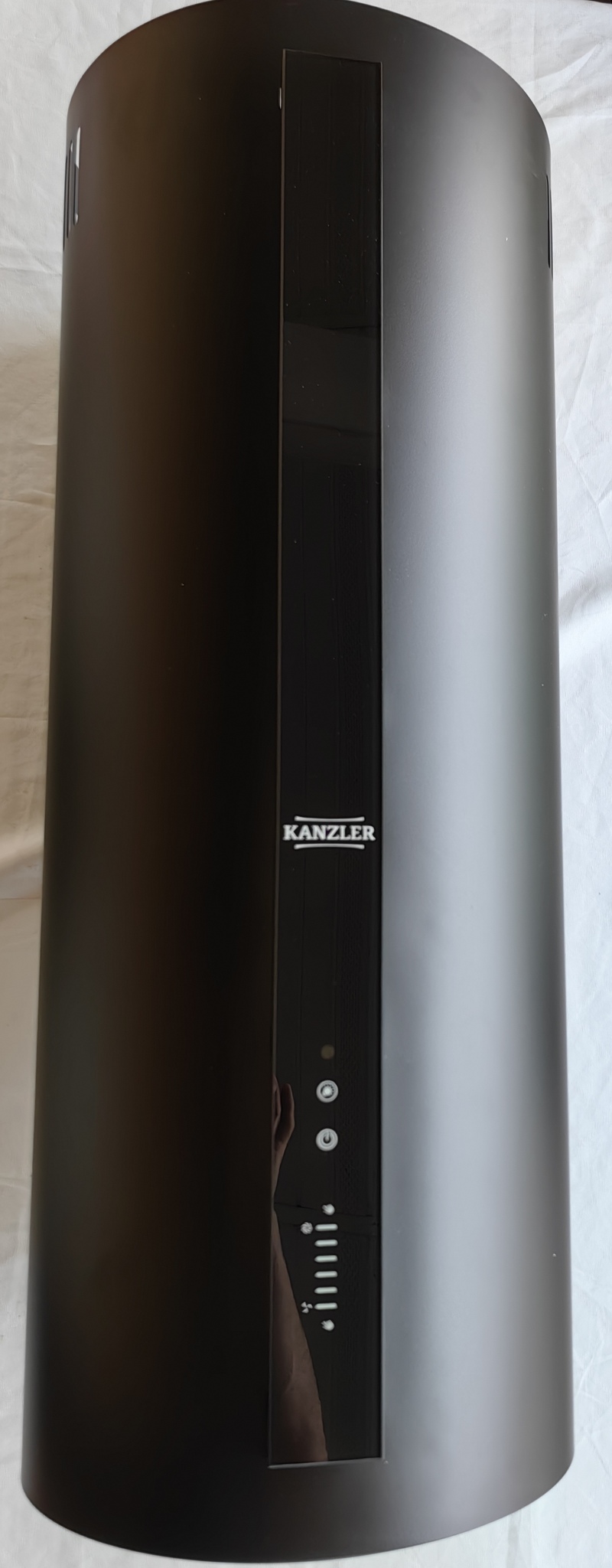 Её корпус выполнен из стали толщиной 0,9 мм. Это гарантирует жёсткость корпуса и снижение вибрации и шума из-за эффекта "колокола", неизбежно возникающего в цилиндрических вытяжках типа "труба".